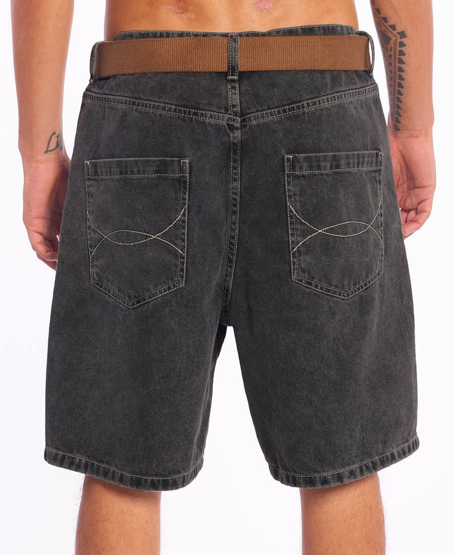 Bermuda Independent Span Pants. DENIM 10,8oz BLACK. 100% ALGODON. BAGGY FIT 22”. Etiqueta de marca/talle. Stone wash. 5 bolsillos. Costuras a contratono. Cordón marcario. Presillas de 2 cm. Botón metálico marcario. Grifa de marca. Bordado en bolsillo relojero. Alegoria en bolsillos de espalda.