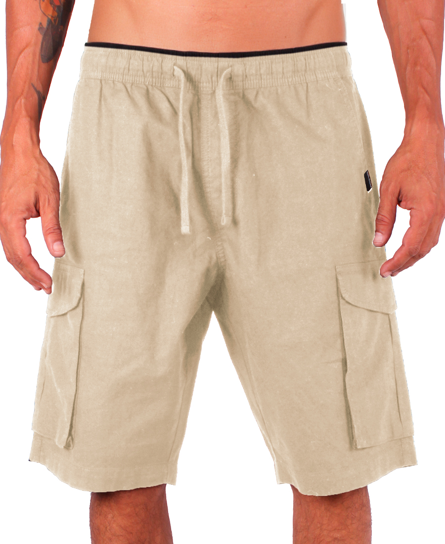 Bermuda Volcom Cargo Linen 20" Imp. Relax Fit. Cintura elastizada con cordón al tono. Bolsillos cargo laterales. Grifa tejida Volcom bolsilo delantero. Parche en bolsillo trasero. Lino / 70% algodón / 30% lino.