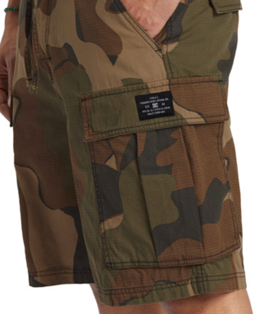 Bermuda DC Cargo Tundra. TELA 100% Algodón Bermuda 21”. Tejido: Ripstop. Fit: Baggy cargo. Cintura con elastico y cordon Avios DC.