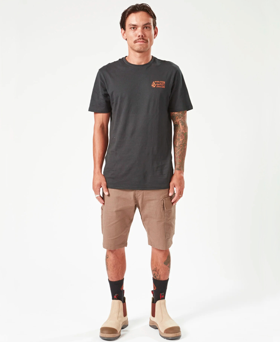 Bermuda Volcom Cargo Relax Caliper 20". Relax Fit. Bordado en pierna. Inspirado en indumentaria de trabajo. Bolsillo cargo. Etiquetas de cápsula Work. Strectch twill 295 grs / 50% algodón / 39% poliester / 2% elastano.