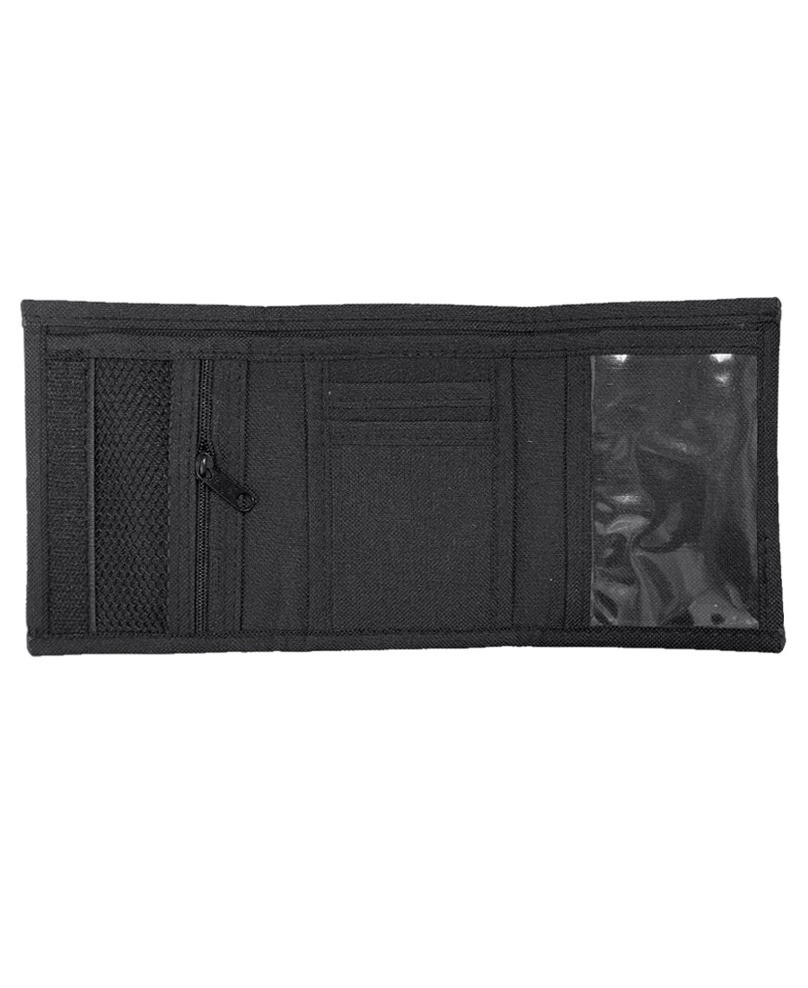 Billetera Independent BTG Pattern de cordura, Full Print, acceso con abrojo, interior con bolsillo con cierre, compartimientos para tarjetas y billetes.