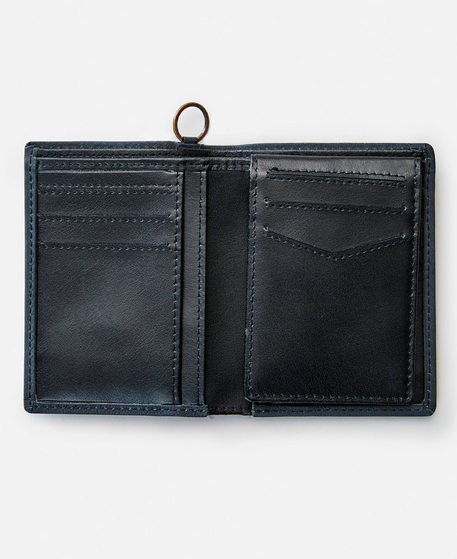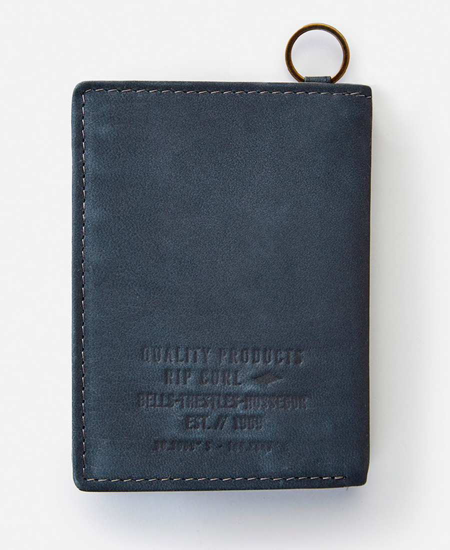 Billetera Rip Curl Quality All Day. Cuero Nobuk. Alto: 100 mm Ancho: 65 mm Profundidad: 10 mm. Ventana de identificación. Protección RFID. Múltiples ranuras para tarjetas. Moneda zip. Detalle de ribete de anillo pequeño.