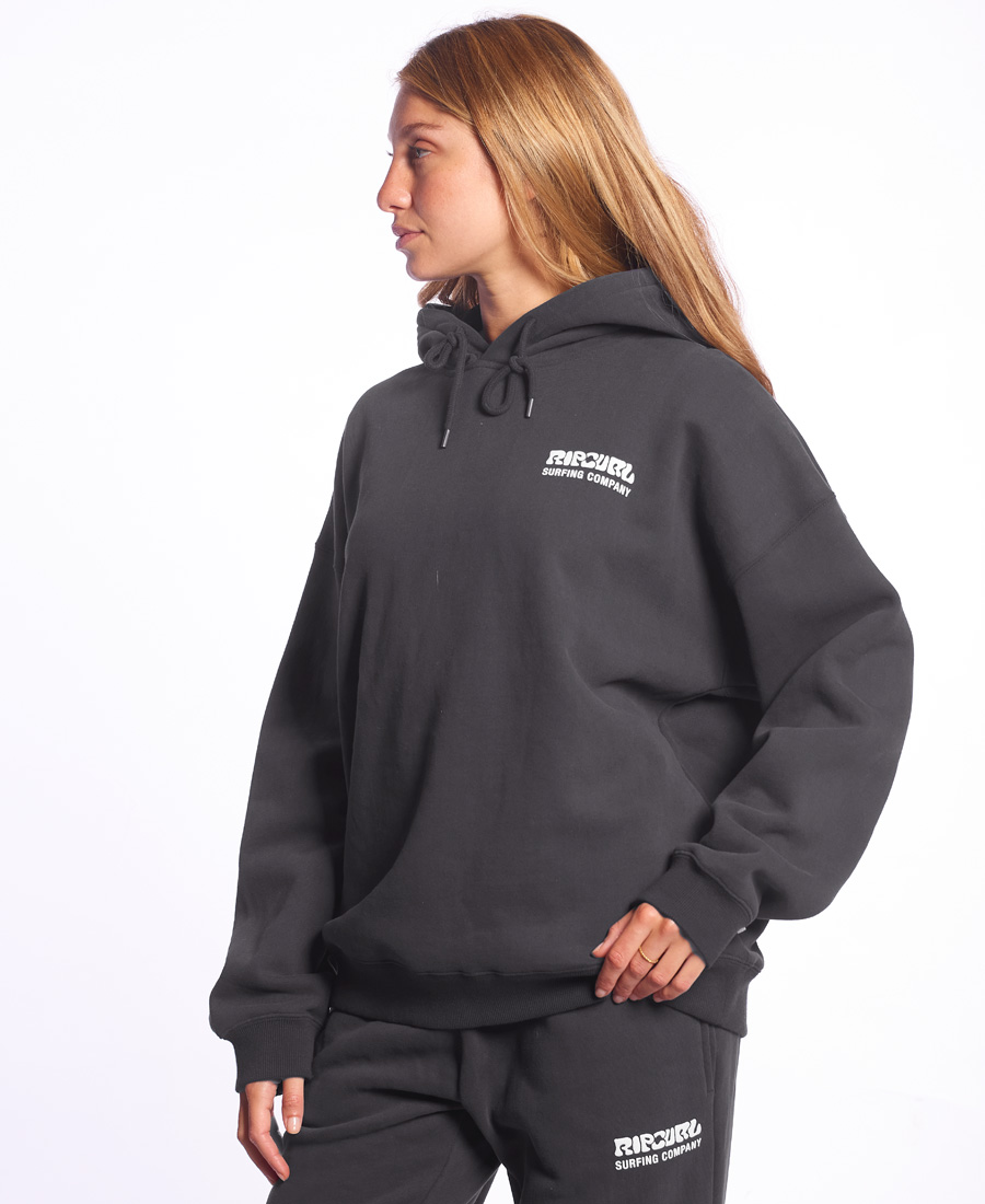 Buzo Rip Curl Hood Over Puff. FRISA INVISIBLE MICROESMERILADA. Oversize fit. Ribb 2 x 2. Limpieza de escote en cinta hilera. Estampa Frente + Espalda /Tecnica Puff/ ∙ Multietiquetas. 90% algodón 10% poliéster.