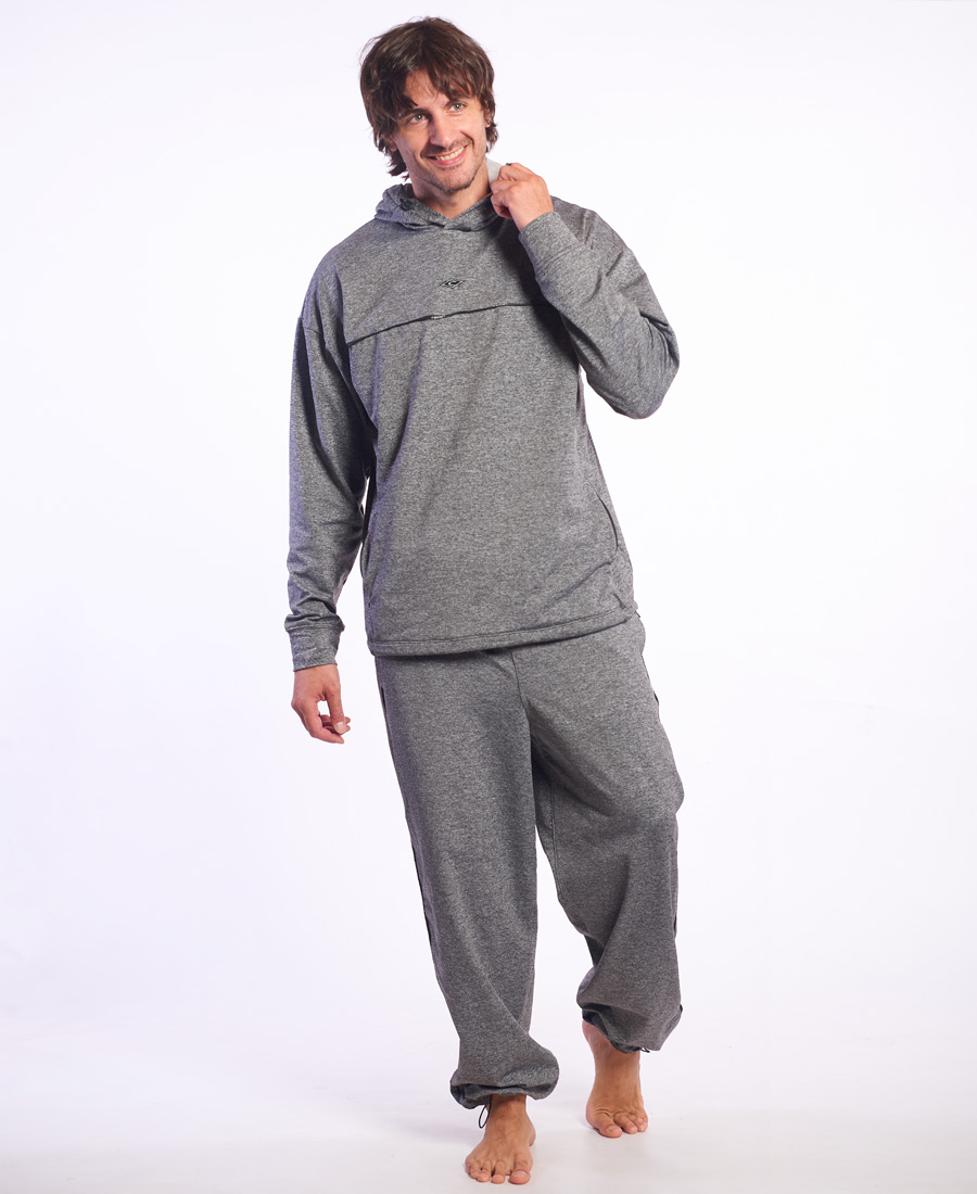 Buzo Rip Curl Medina. TERMICO JASPEADO. Relaxed fit. Recortes + bolsillos en delantero. Cierres invisibles. Vivo marcario. Transfer de marca. Tancas en capucha y cintura. Limpieza de escote en cint hilera. Multietiquetas. 90% Poliéster 10% Elastano.