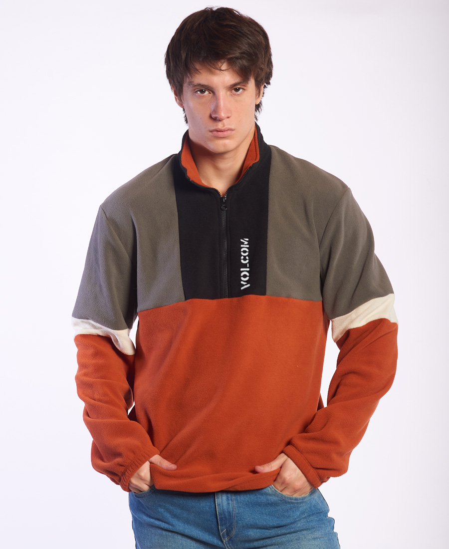 Buzo Volcom Mock Neck. Polar fleece 230 g / 100% Poliester. Bordado Volcom en pecho. Cintura y puños con elástico. Cuello alto con 1/2 cierre. Regular Fit.