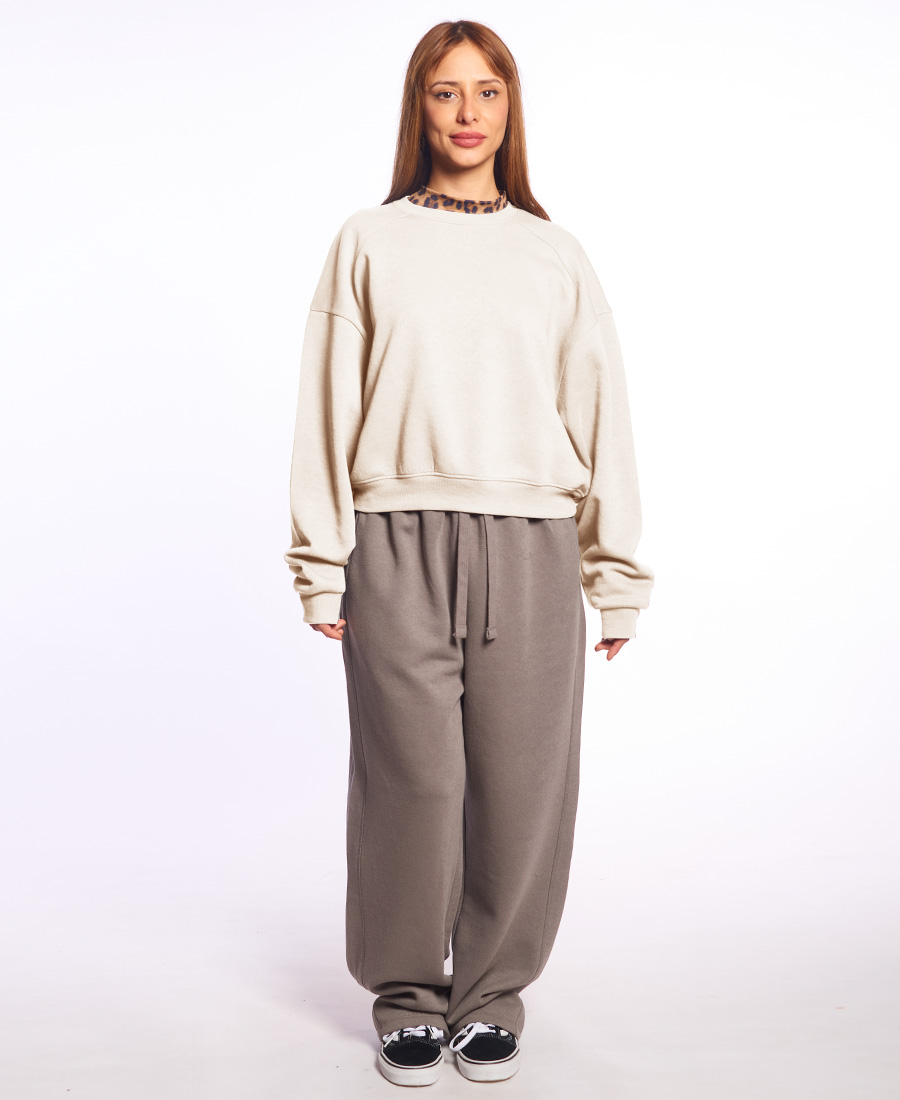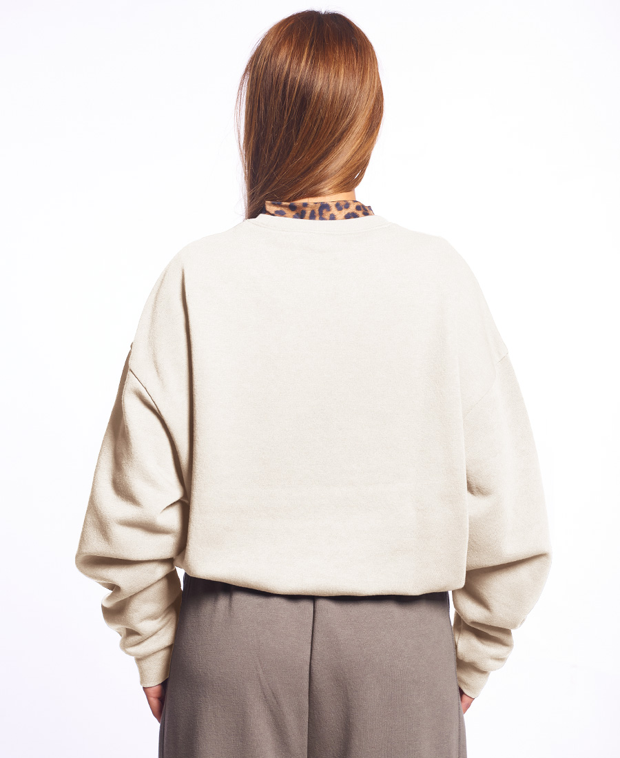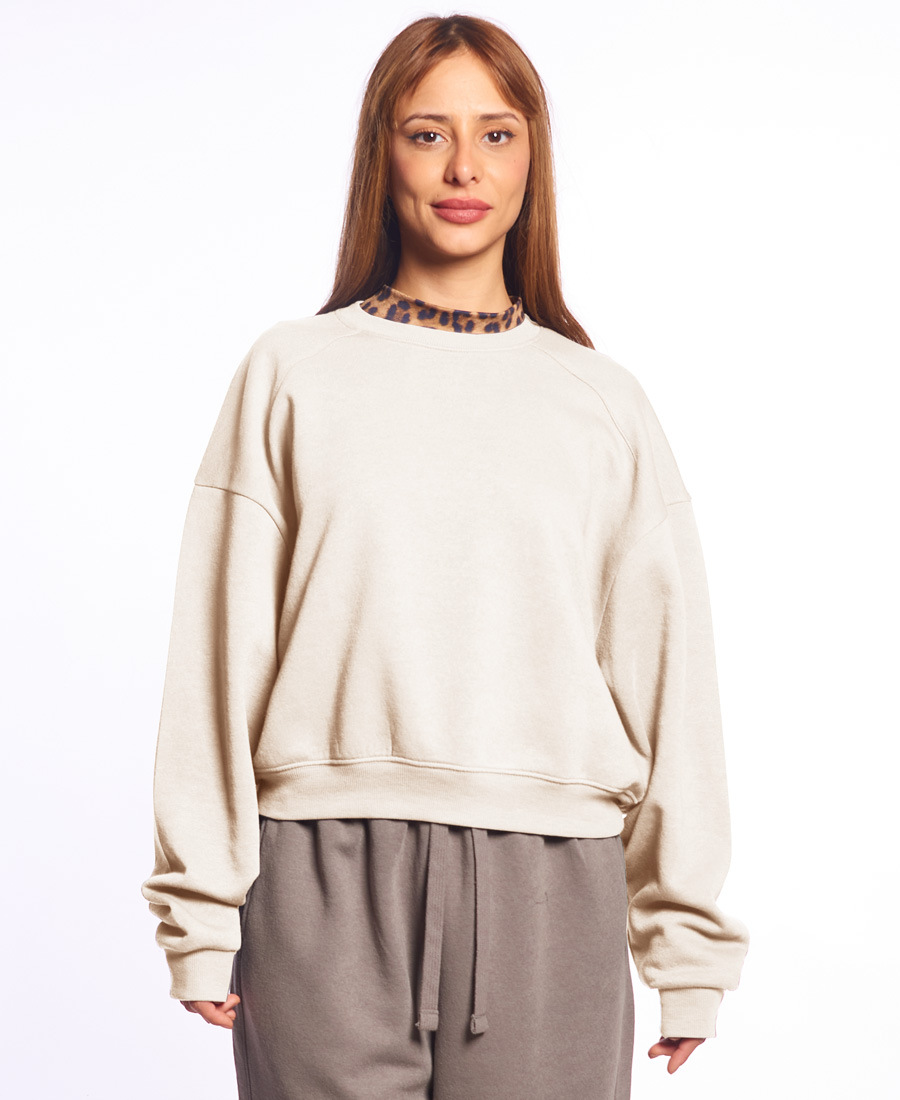Buzo Isabel La Católica Crew Boxy FRISA. 60% Algodon 40% Poliester. BOXY FIT. Etiqueta Marca/talle. 260 grs. Pinzas en escote. Puños a tono. Etiqueta de marca.