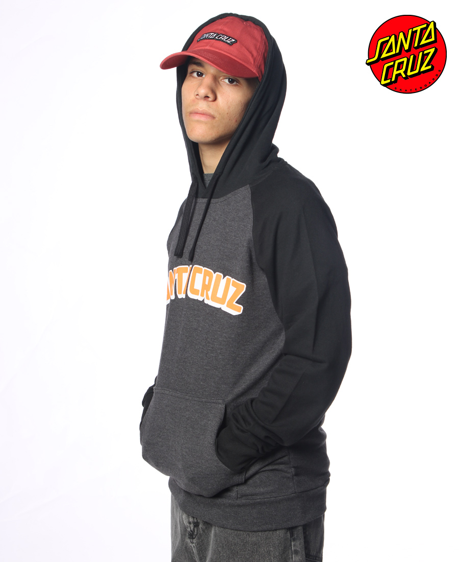 Buzo Santa Cruz College Arch Shadow. Buzo rústico manga ranglan con capucha y bolsillo canguro, estampa frontal, cordones de algodón, etiquetas marcarias.