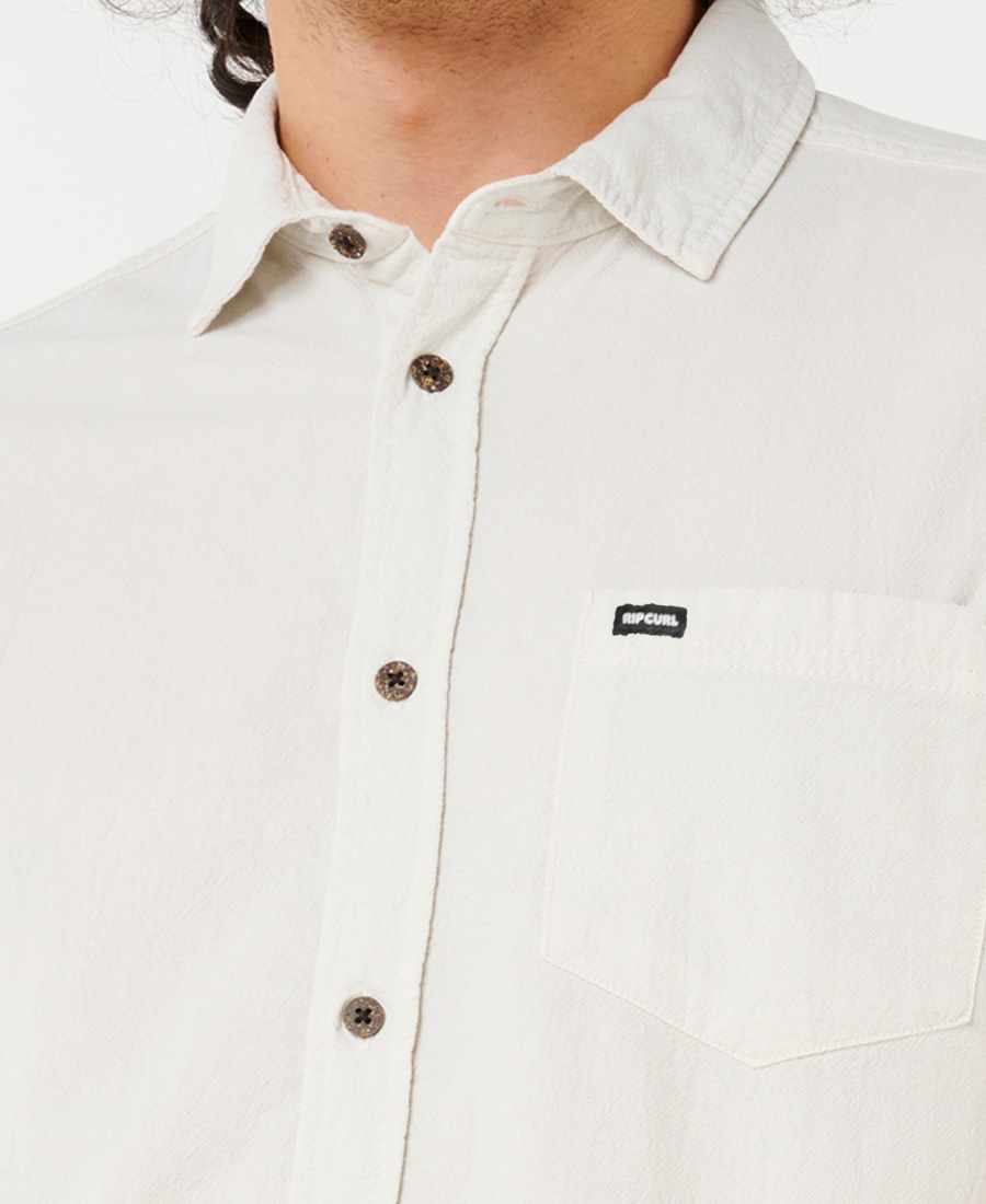 Camisa Rip Curl Gasa Plain. Gasa bambula standard fit. Bolsillo Frontal Plaque. Botones de Coco. Multietiquetas. 100% Algodon.