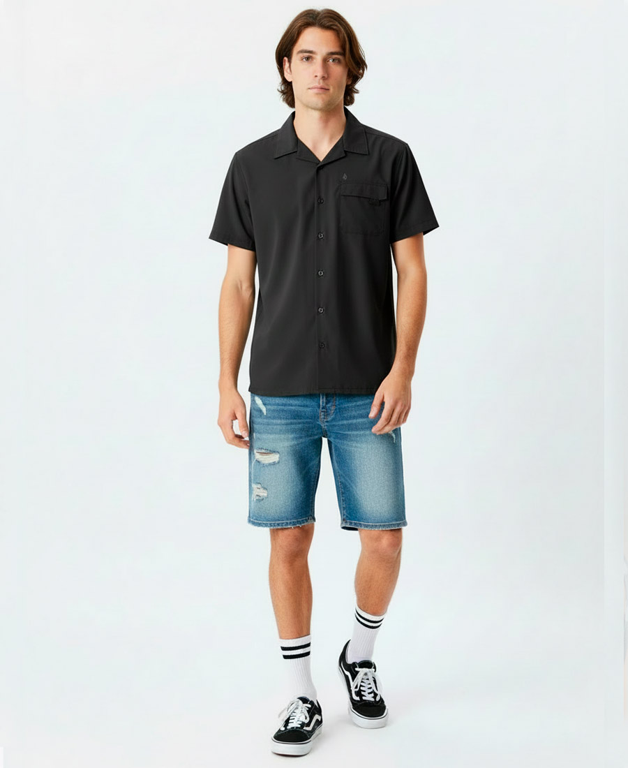 Camisa manga corta Volcom Ridgestone • Classic fit • Bolsillo delantero con tapa y fuelle de mesh • Botones personalizados • Grifa Volcom • V.Co-Tech™: • Tejido liviano anti desgarro • Repelencia al agua • Protección UV 50
