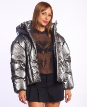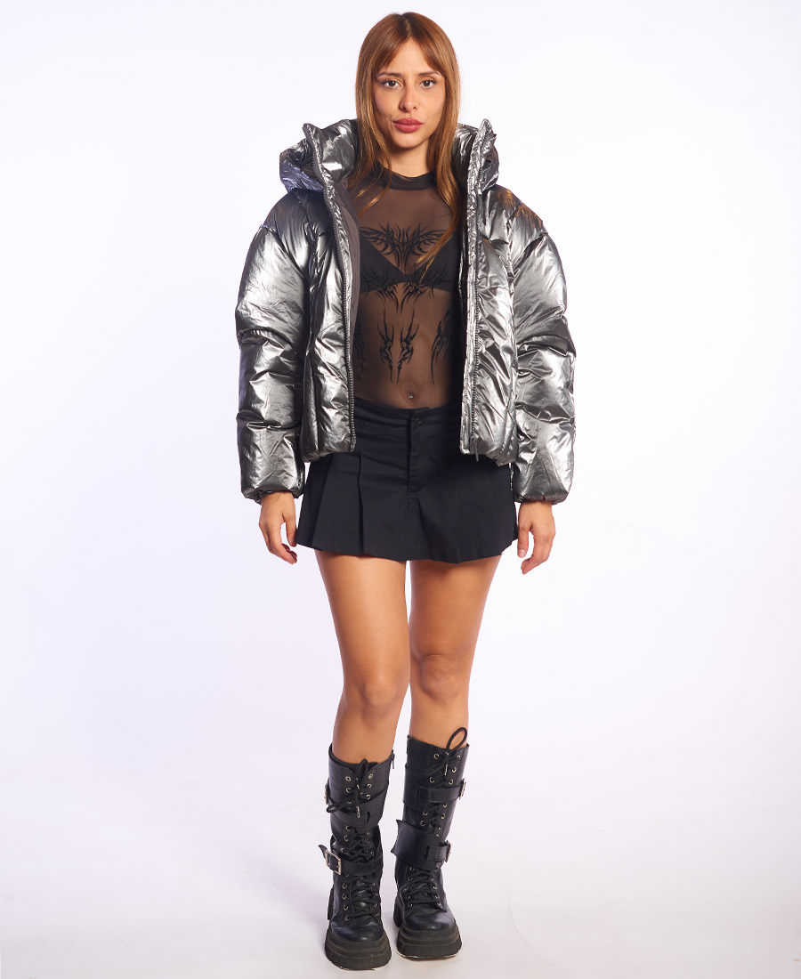Campera Isabel La Católica Puffer  CROP FIT. Etiqueta Marca/talle. Microfibra reflex. Hilo a tono. Grifa de marca.
