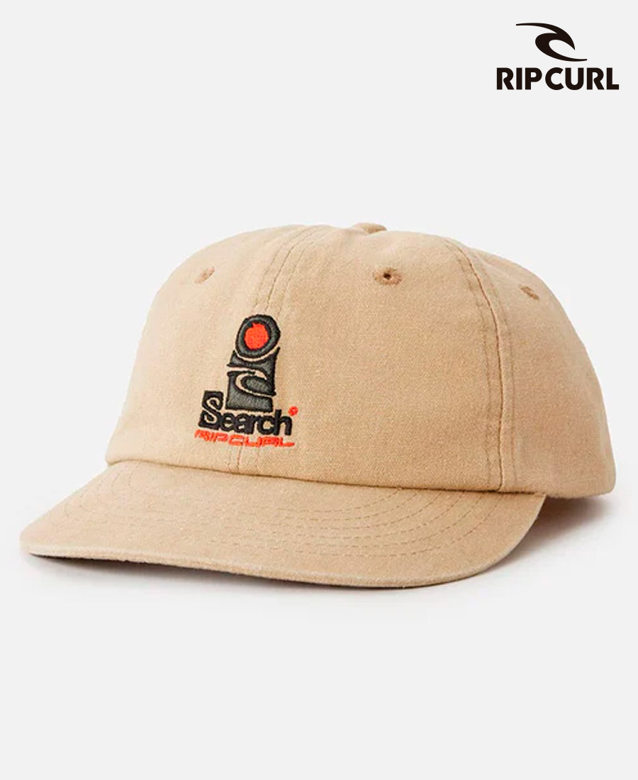 Cap Rip Curl Searchers. Lona lavada. Perfil medio. Pico de curva ligera. No estructurado. Insignia bordado. Cinta de ajuste con hebilla.