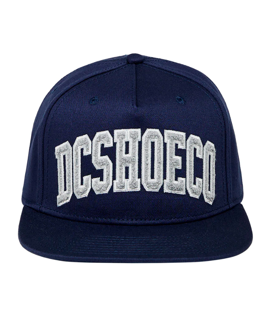 Cap DC Univercity. TELA 100% Algodón. Construcción de 6 paneles. Visera semicurva. Cierre Snapback. Logo bordado en el frente.