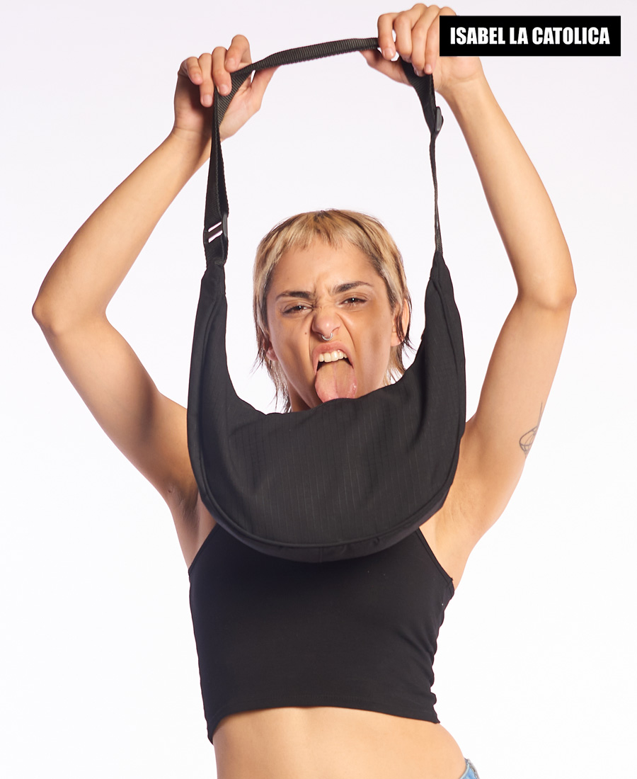 Cartera Isabel La Católica Media Luna Pouch sb. Nylon. Cierre diente de perro. Bolsillo interno. Detalle marcario en avios.