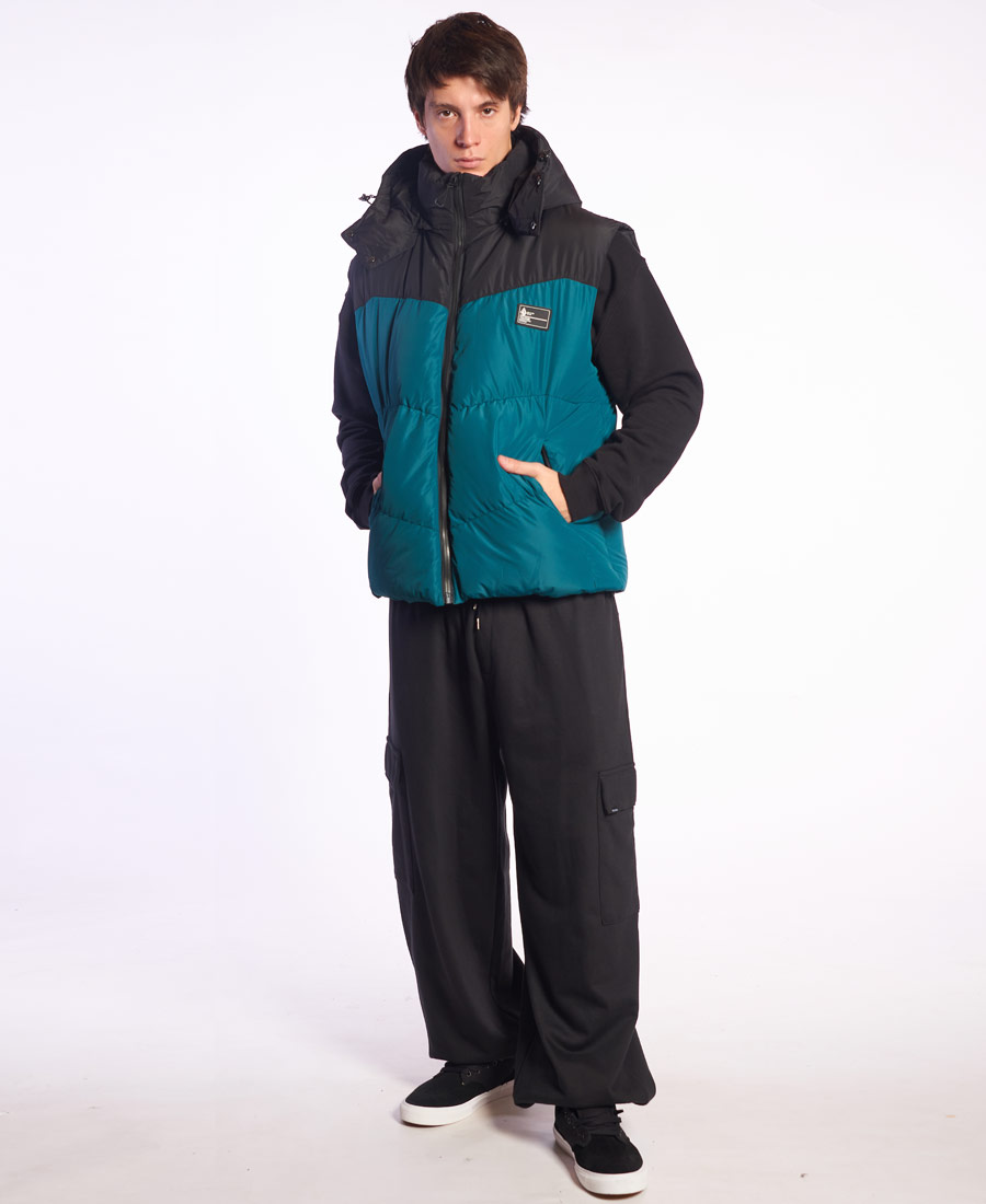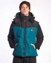 Chaleco Volcom Puffer Goldsmooth.100% Nylon. Chaleco puffer pesado con capucha desmontable. Bolsillos laterales con cierre. Bordado en espalda. Parche PVC en pecho. Repelente al agua 5000mm. Respirable. A prueba de viento.