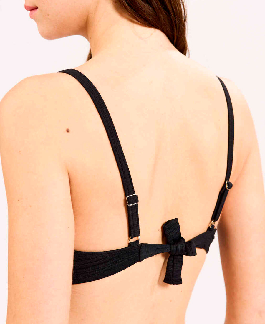 Corpiño Billabong Sunray Ring. Confeccionado en tejido con relieve, que combina diseño y comodidad. Posee breteles regulables, detalle metálico en el centro y ajuste con lazo en la espalda. Incluye chapita de marca como toque final. Composición: 90% Poliéster, 10% Elastano.