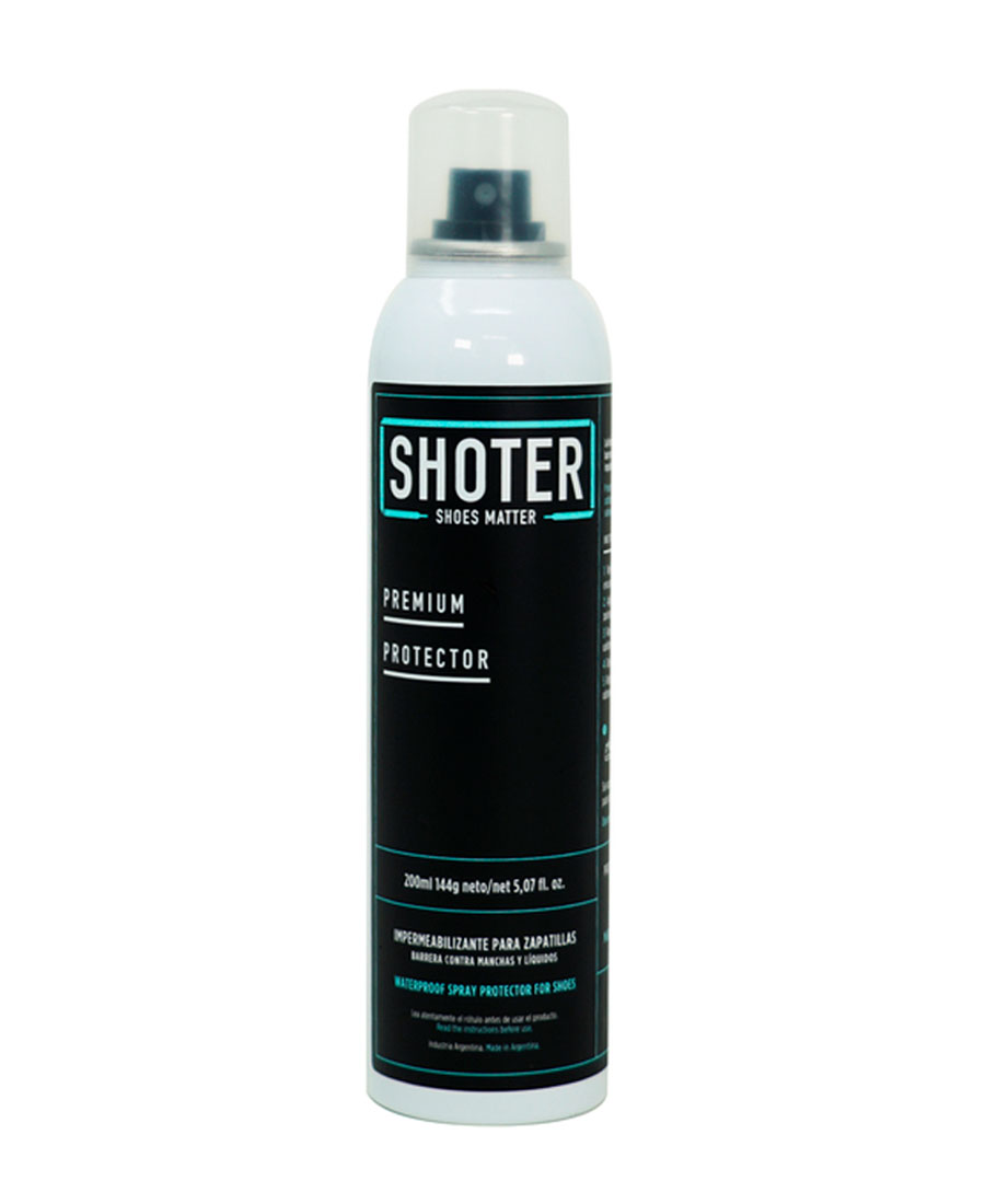 Impermeabilizante Shoter 200ml. El Premium Protector es una solución ideal para crear una barrera protectora contra la suciedad y líquidos, asegurando que no se adhieran ni traspasen al calzado. Perfecto para todo tipo de materiales como nobuck, cuero, lona, tela y gamuza, este protector ayuda a mantener tus zapatos en excelente estado, protegiéndolos de la humedad y la suciedad diaria.
