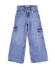 Jean Rip Curl Cargo Low Blue DENIM RIGIDO 10 OZ. Wide leg fit. Tiro medio. Pantalon Cargo. Avios metalicos Oro viejo.