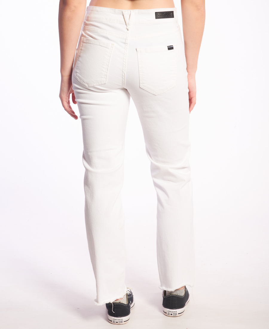 Jean Volcom Mid Step Straight. Bordado Volcom Stone pierna trasera • Ruedo al corte desflecado • Lavado color • Mid rise straight leg.
