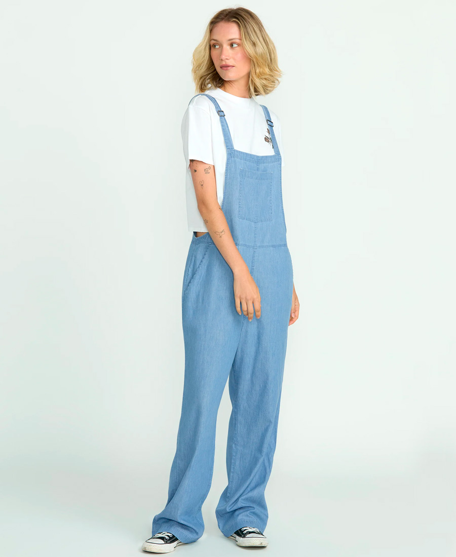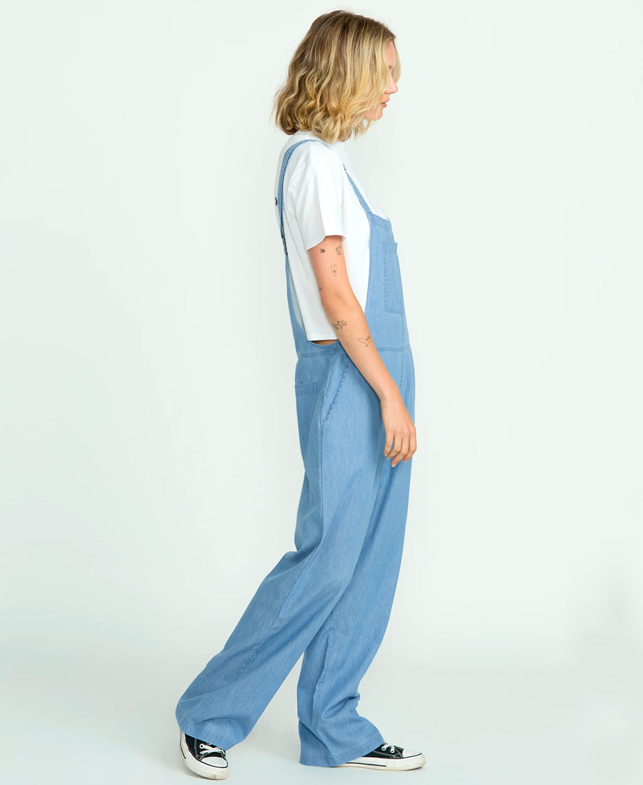 Jumpsuit Volcom Lived In Romper. Loose Fit. Bolsillos en delantero. Overall con tiras regulables. Chapita Volcom en espalda. Bolsillo plaque en pechera. 28” Inseam. CMB: Denim Twill / 100% algodón / VBK: Twill piel de durazno / 54% algodón / 46% viscosa.