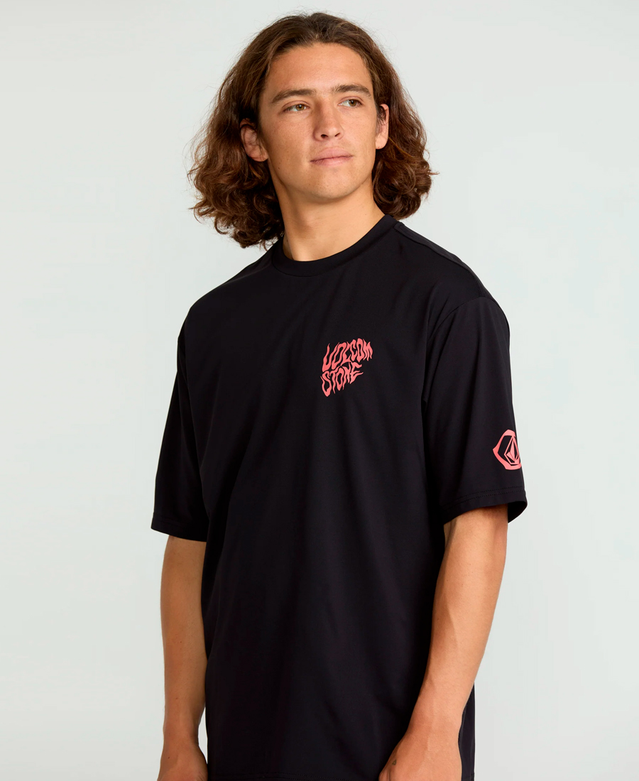 Lycra Volcom Boxy UV50. Boxy Fit. Protección UV +50. Estampa en pecho y mangas. Ojal de cinta negra, expuesta. Lycra / 92% poliéster reciclado / 8% elastano.