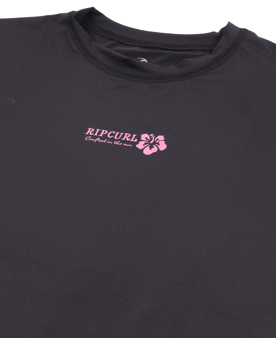 Lycra Rip Curl Relaxed Hibiscus. LYCRA UV + 50. RELAXED FIT. Estampa en frente y espalda. Marca y talle estampado. Grifa marcaria. Protección solar UPF 50+. 84% poliester 16 % elastano.