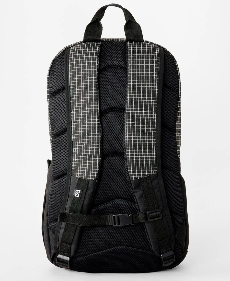 Mochila Rip Curl Overtime 30L. Gran bolsillo de audio. Bolsillo para botella de bebida. Panel trasero y correas transpirables de malla de aire. Bolsillo delantero con forro polar.