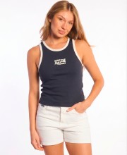 Musculosa Rip Curl Aloha Ribb. RIBB. STANDAR FIT. Collareta en sisas y escote a contratono. Estampa en delantero. Multietiquetas. 95% algodon 5% elastano.