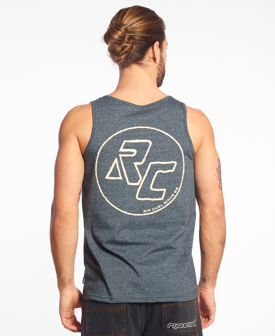 Musculosa Rip Curl Mouline. JERSEY MOULINE. RELAXED FIT. Estampa central + espalda. Estampa de marca y talle. Grifa de marca tejida. 50% algodón - 50% poliéster.