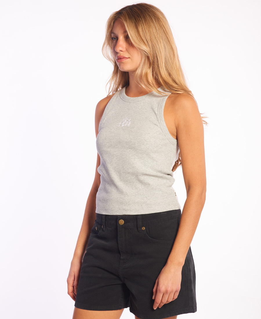 Musculosa Rip Curl Rib Luxe. STRETCH COTTON RIB 245G. STANDARD FIT. Lavado suavizado. Bordado en el frente. Estampa interna Marca + talle. Multietiquetas. 95% algodon 5% elastano.