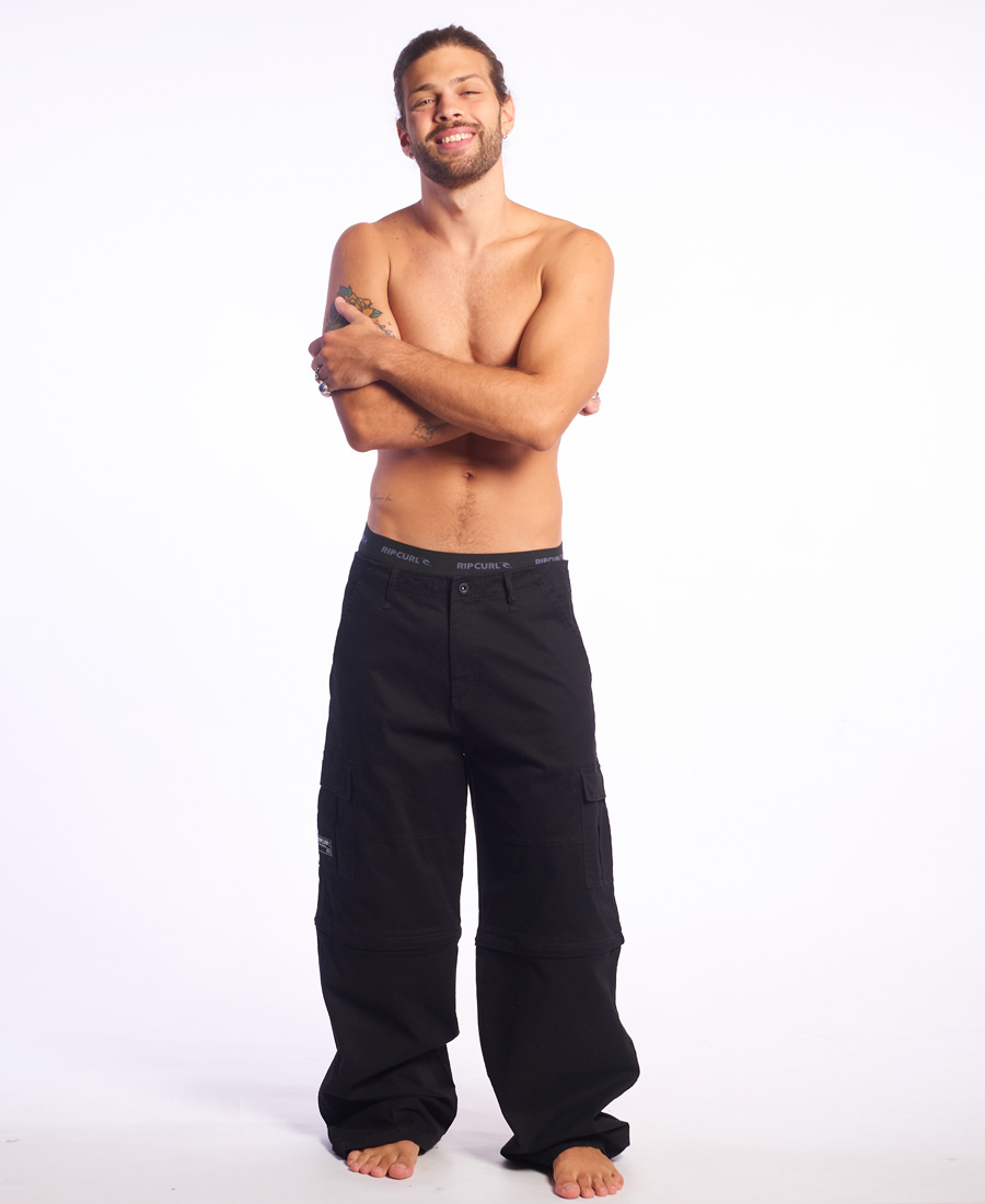 Pantalón Rip Curl Loose Cargo Desmontable. GABARDINA 7 OZ. C/ELASTANO ∙ Loose fit ∙ Cargo Desmontable 23”. ∙ Bolsillos cargo. ∙ Botones personalizados. ∙ Multietiquetas. Composición: 98% Alg 2% Elastano.