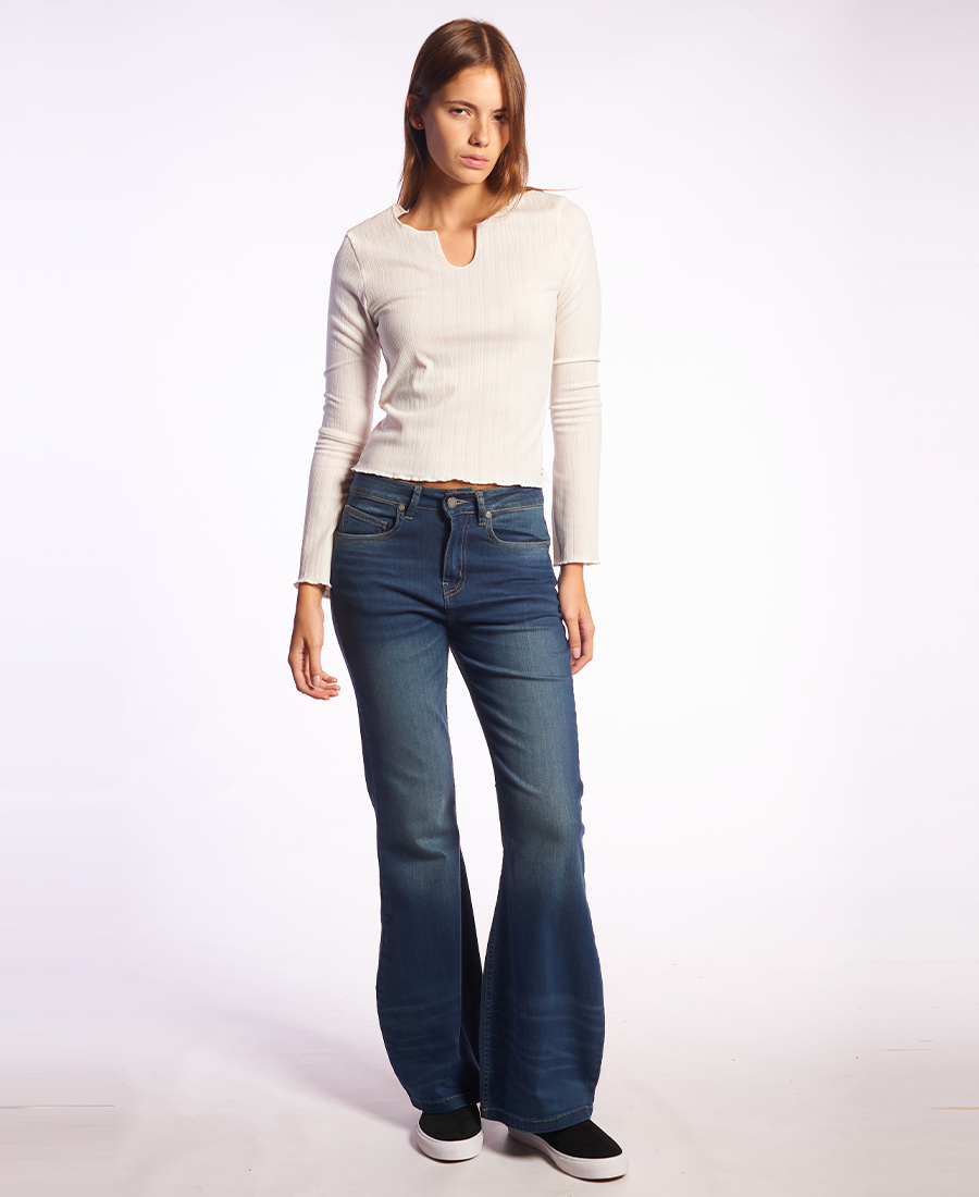 • Denim bootleg • Lavado localizado con bigotes
