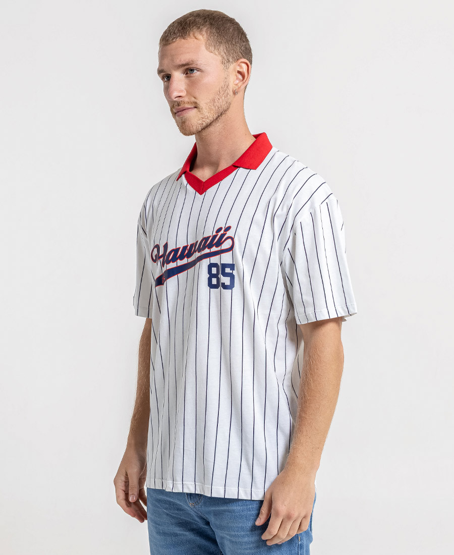 Polo Rusty Islands. Tejido: Jersey 24/1 fullprint digital + Cuello tejido. Composición: 100% Algodón Peinado. Calce: Oversize Fit. Origen: Nacional. Cuello chomba. Estampa en delantero y espalda.