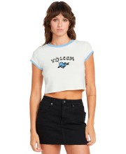Remera Volcom Ringer Rib. Ringer Crop. Estampa en delantero. Body Fit. Etiqueta de talle estampada. Grifa tejida en espalda. HPS 16”. Rib 24/1 / 100% algodón.