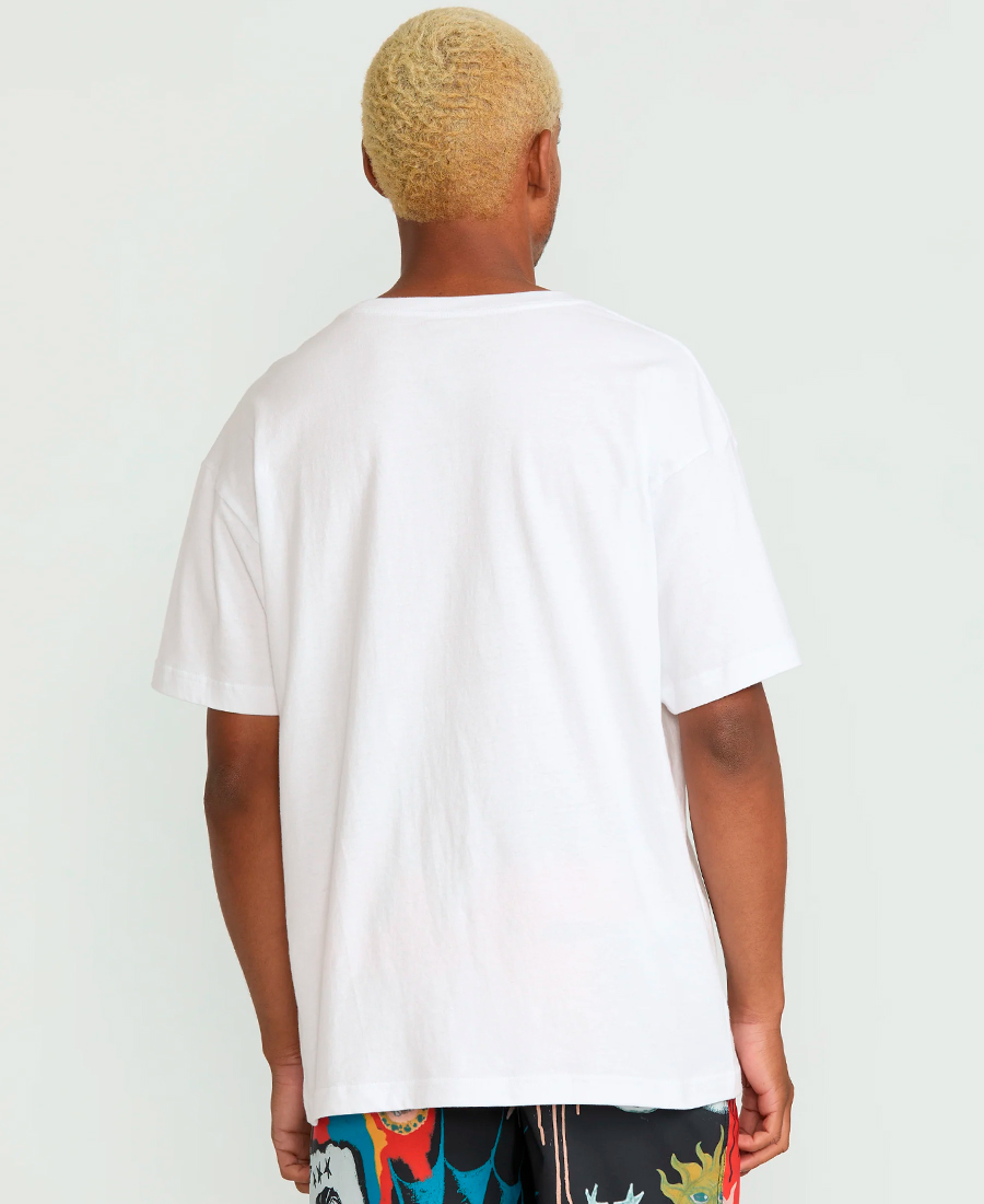 Remera Volcom RLX Artistic Unisex. Relax Fit. Estampas en colaboración con el artista Seth Conboy. Grifa Volcom. Limpieza de cuello en jersey rayado. Etiqueta de talle estampada. Jersey 20/1 / 100% algodón.