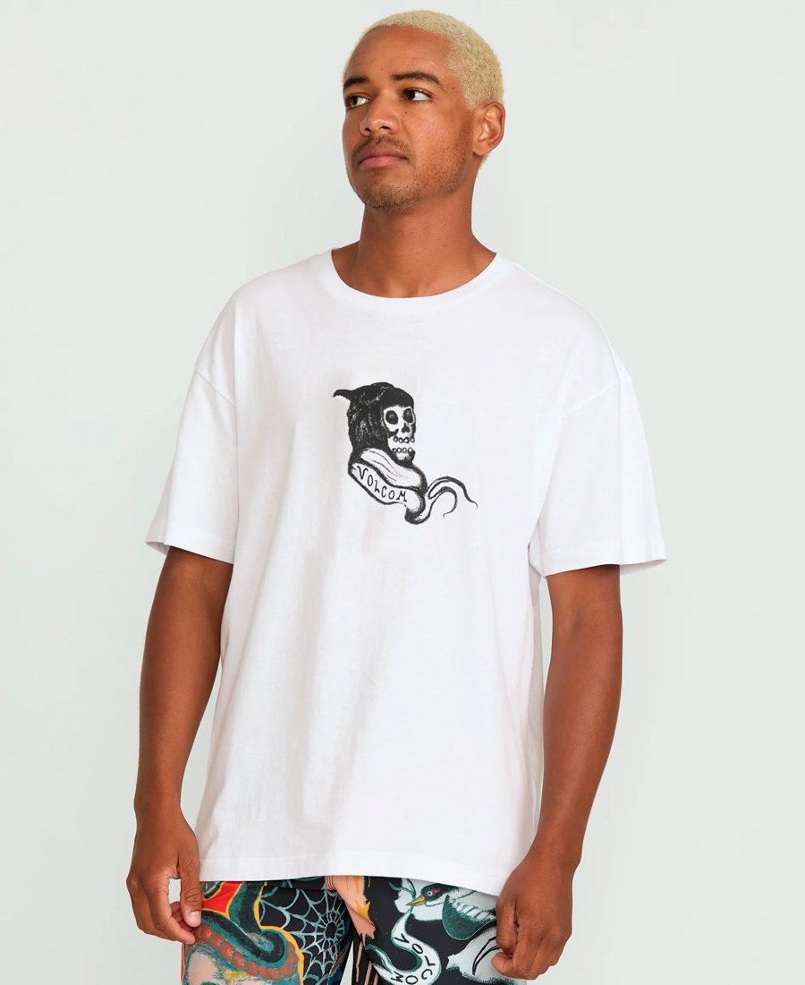Remera Volcom RLX Artistic Unisex. Relax Fit. Estampas en colaboración con el artista Seth Conboy. Grifa Volcom. Limpieza de cuello en jersey rayado. Etiqueta de talle estampada. Jersey 20/1 / 100% algodón.