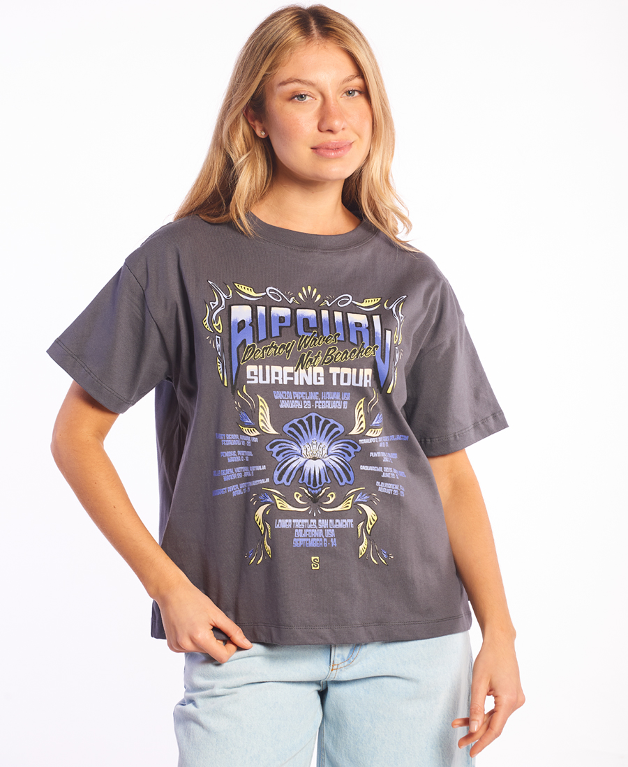 Remera Rip Curl Beach JERSEY 16/1 RELAXED FIT ∙ Estampa Marca/Talle interna ∙ Tirillera de hombro a hombro ∙ Estampa en delantero y espalda ∙ Multietiquetas 100% Algodon