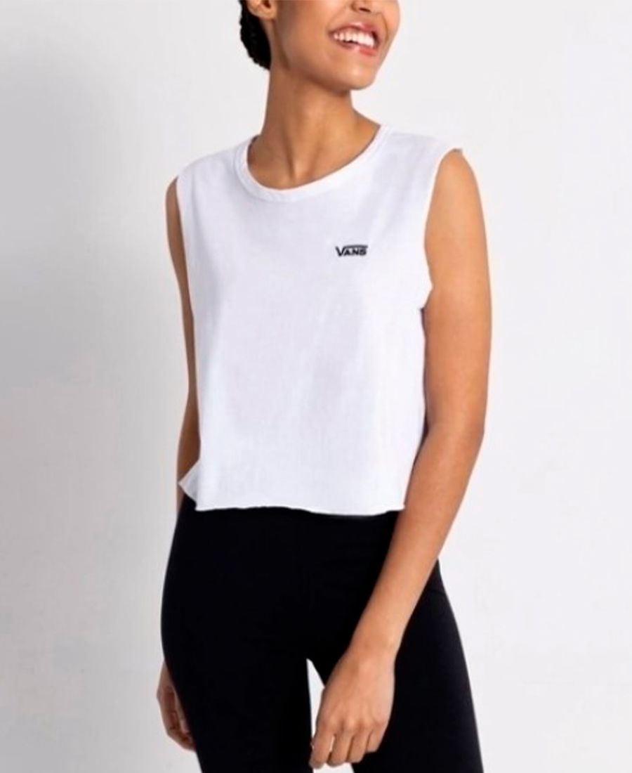 La camiseta sin mangas Junior V Muscle Crop está confeccionada en punto pesado de algodón 100 % con overlock y un logotipo clásico bordado en el pecho.