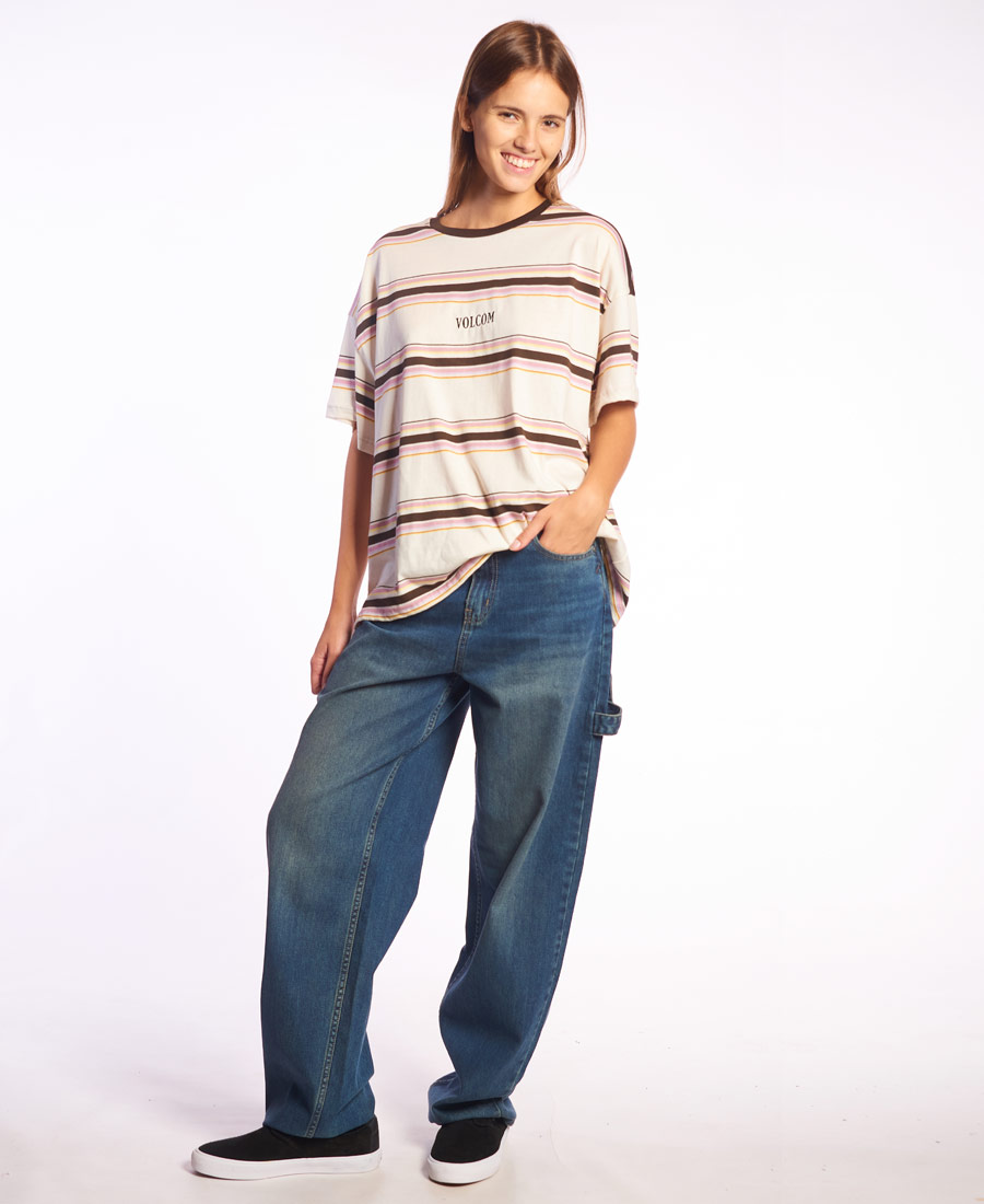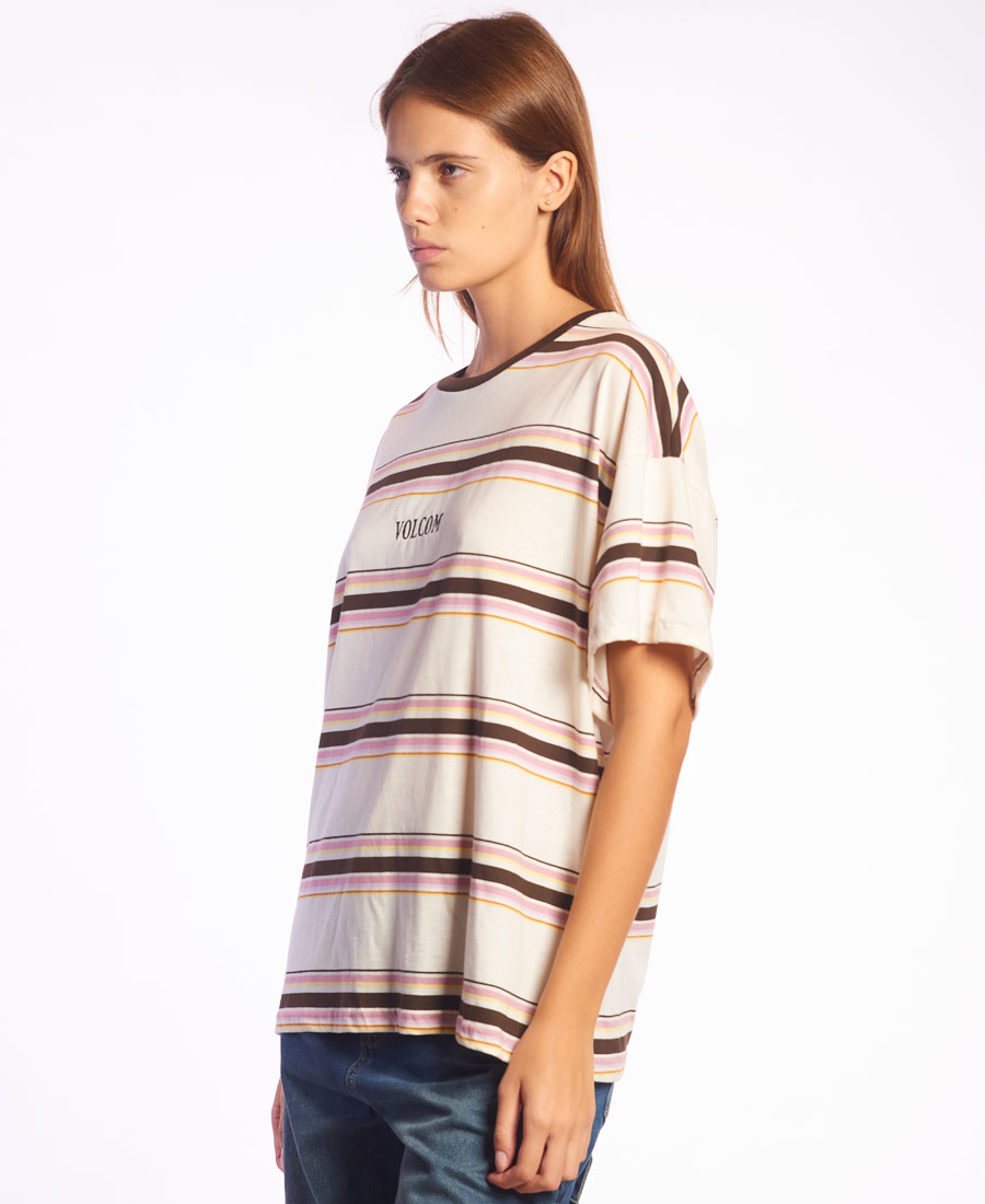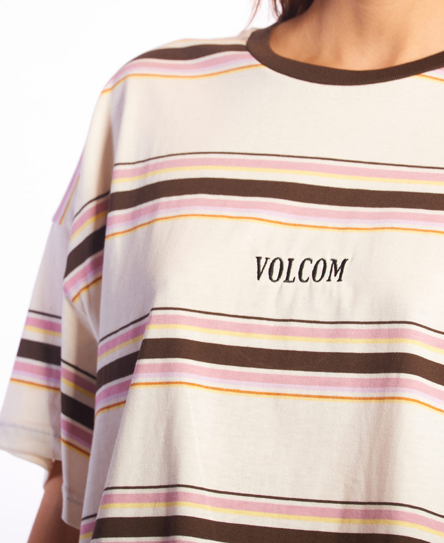 Remera Volcom Over Party.  Manga corta rayada • Bordado en delantero • Grifa Volcom en espalda  • Etiqueta marca/talle tejida • Oversize Fit. Jersey rayado / 100% Algodón