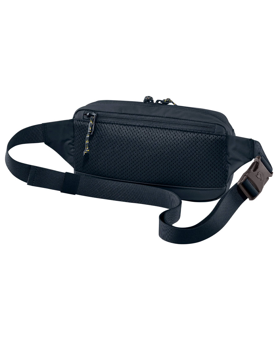 Riñonera Fjallraven Kanken High Coast. Ligero y compacto.. Nailon 100% reciclado e impermeable. Bolsillo de seguridad con cierre, y rejilla de ventilacion en parte trasera. Compartimiento principal con cierre tiene un bolsillo abierto y un clip para llaves. Color azul marino.