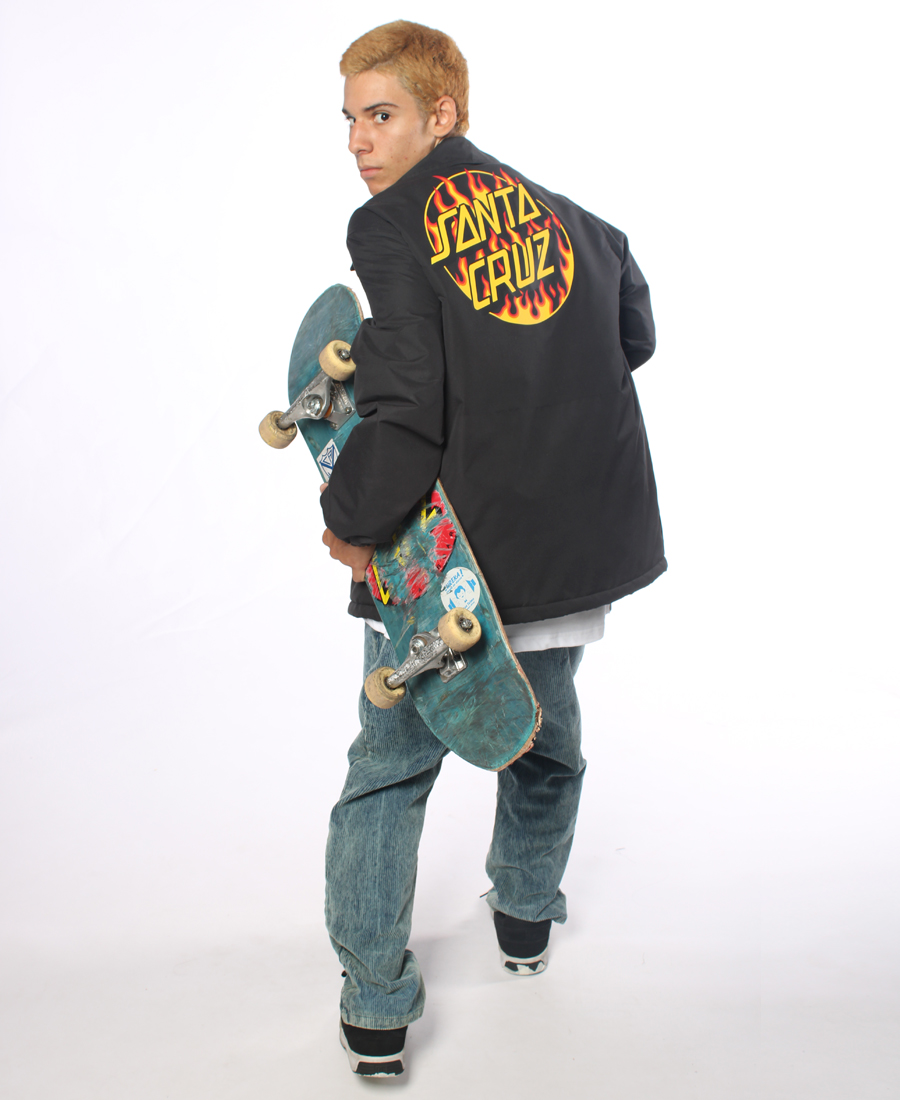 Rompevientos Santa Cruz X Thrasher Flame Dot ROMPEVIENTO Impermeable con forreria de nylon matelaseada, estampa en frente y espalda, botones marcarios intercalando ambas marcas, elastico en puños y cordon en cintura para ajuste, etiquetas marcarias.
