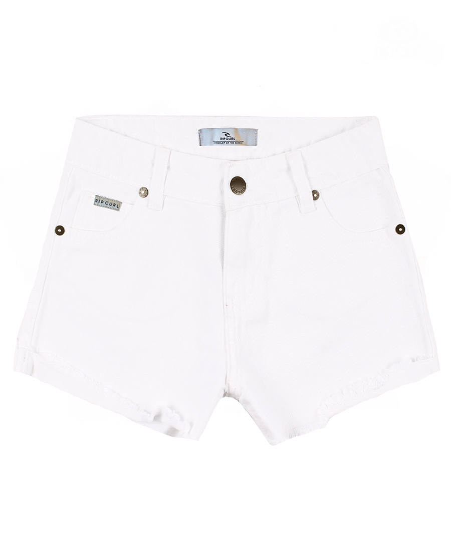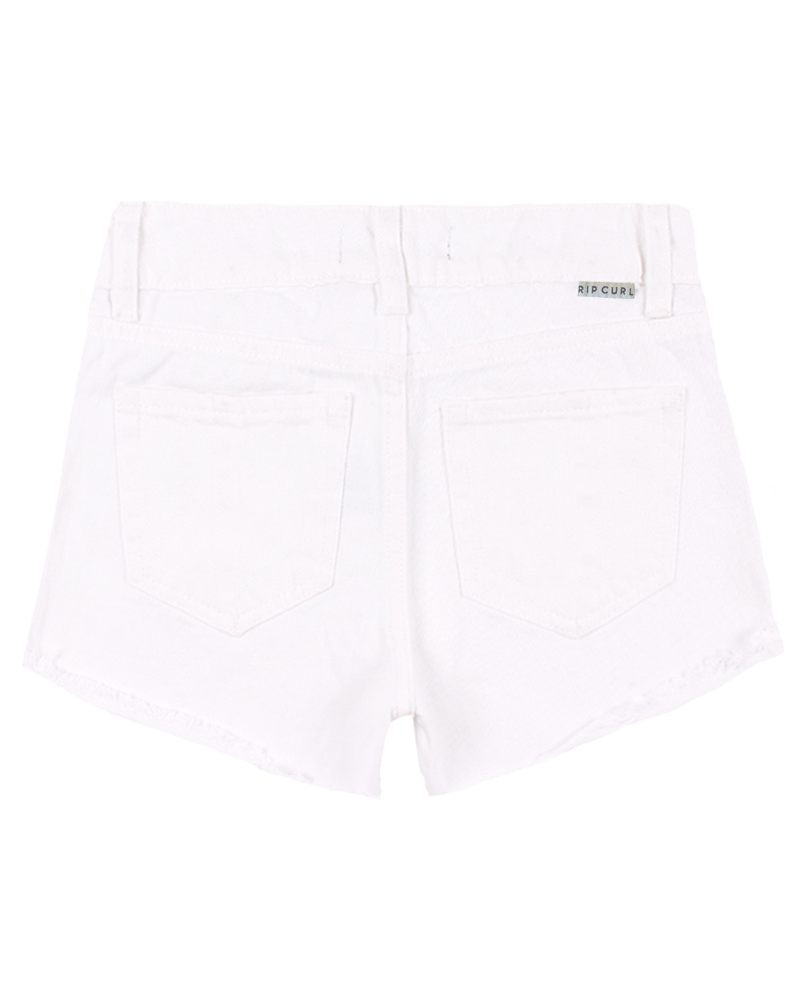 Short Rip Curl White Frayed DENIM RÍGIDO ∙ Relaxed fit ∙ Ruedos deflecados ∙ Laterales rebatidos ∙ Suavizado ∙ Remaches negros ∙ Multietiquetas 100% algodón