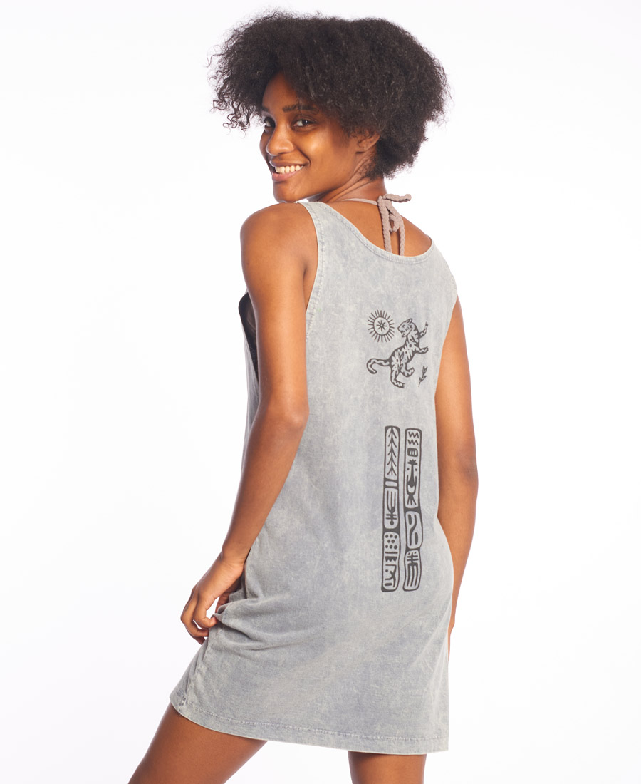 Vestido Y Tu Quique? Process Chaman. JERSEY 24-1 100% Algodon. Etiqueta de Marca/talle. Lavado PROCESS gris. Estampa Frente + Espalda. Grifa de marca. REGULAR FIT.