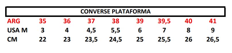 Los centímetros expresados en la tabla de talle, son del largo del pie no del largo de plantilla.