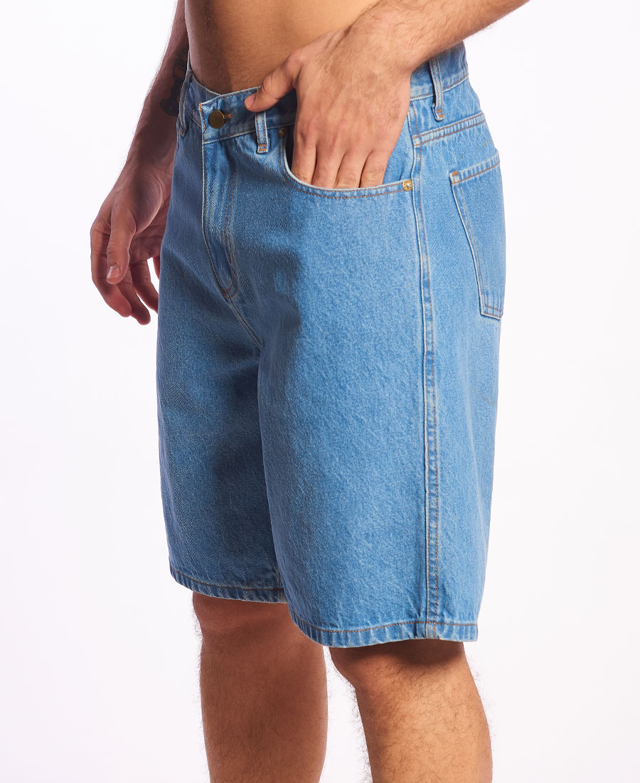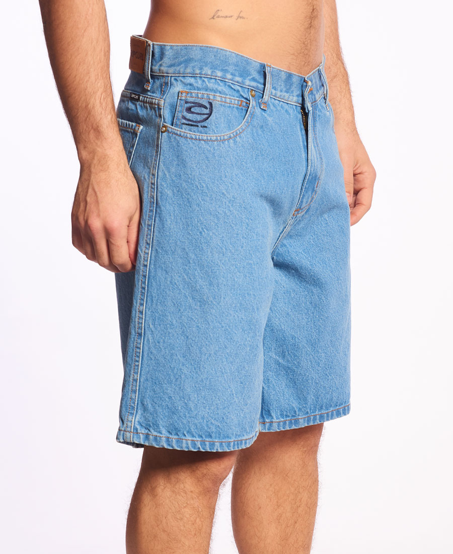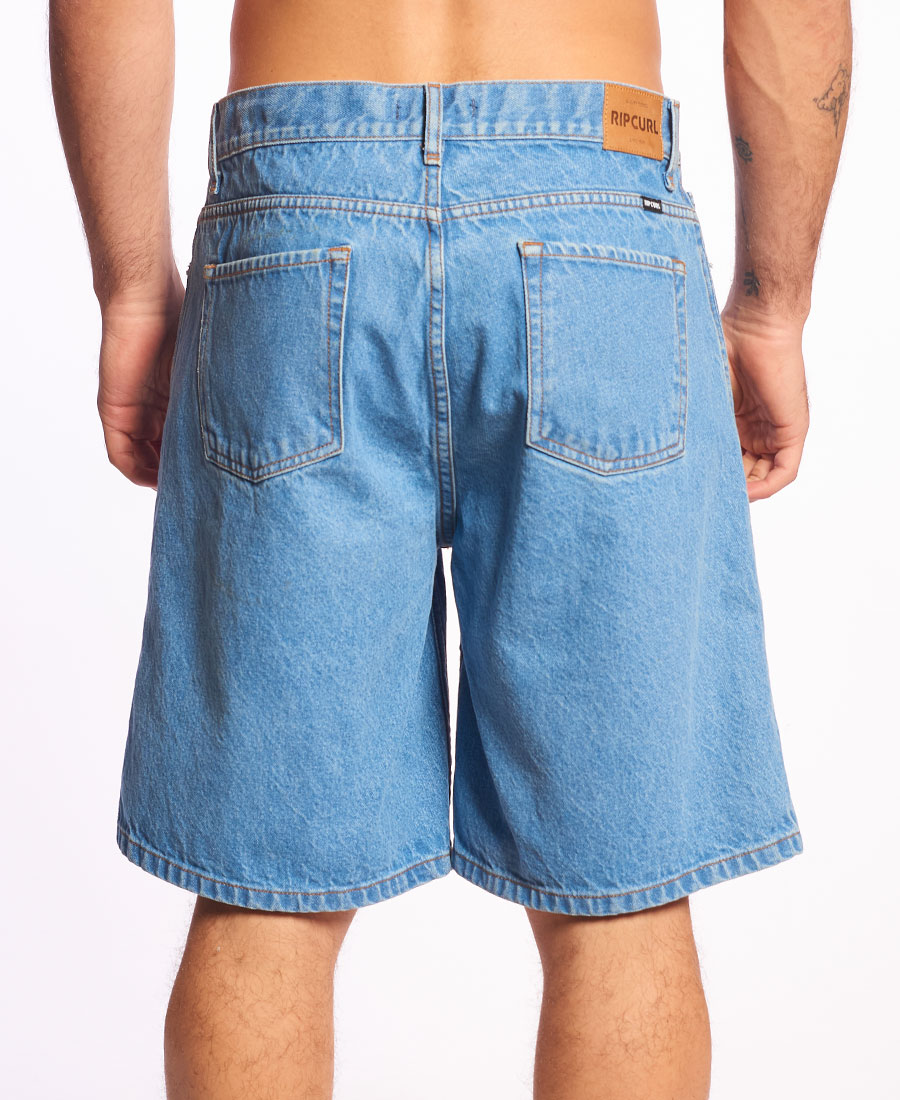 Bermuda Rip Curl Loose Dosed 21". DENIM BLUE 12 Oz. LOOSE FIT. Lavado Stone Light Blue. 21 Pulgadas (53,34 cm). Etiqueta tejida. Metales Oro Italiano. Multietiquetas. Badana Suela. 100% algodón.