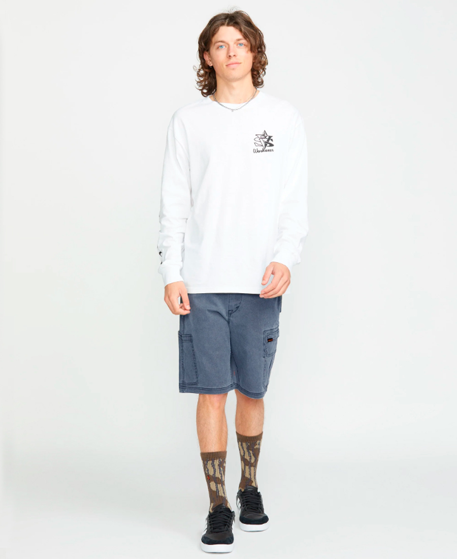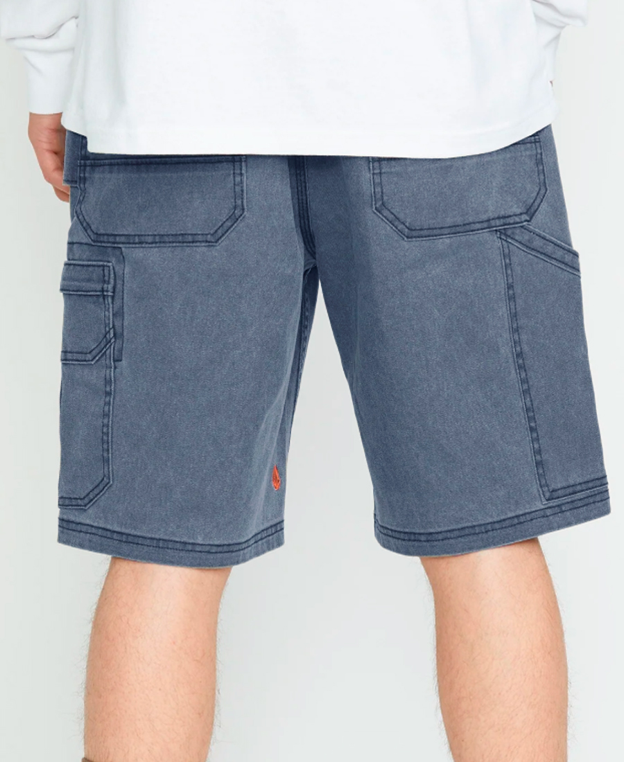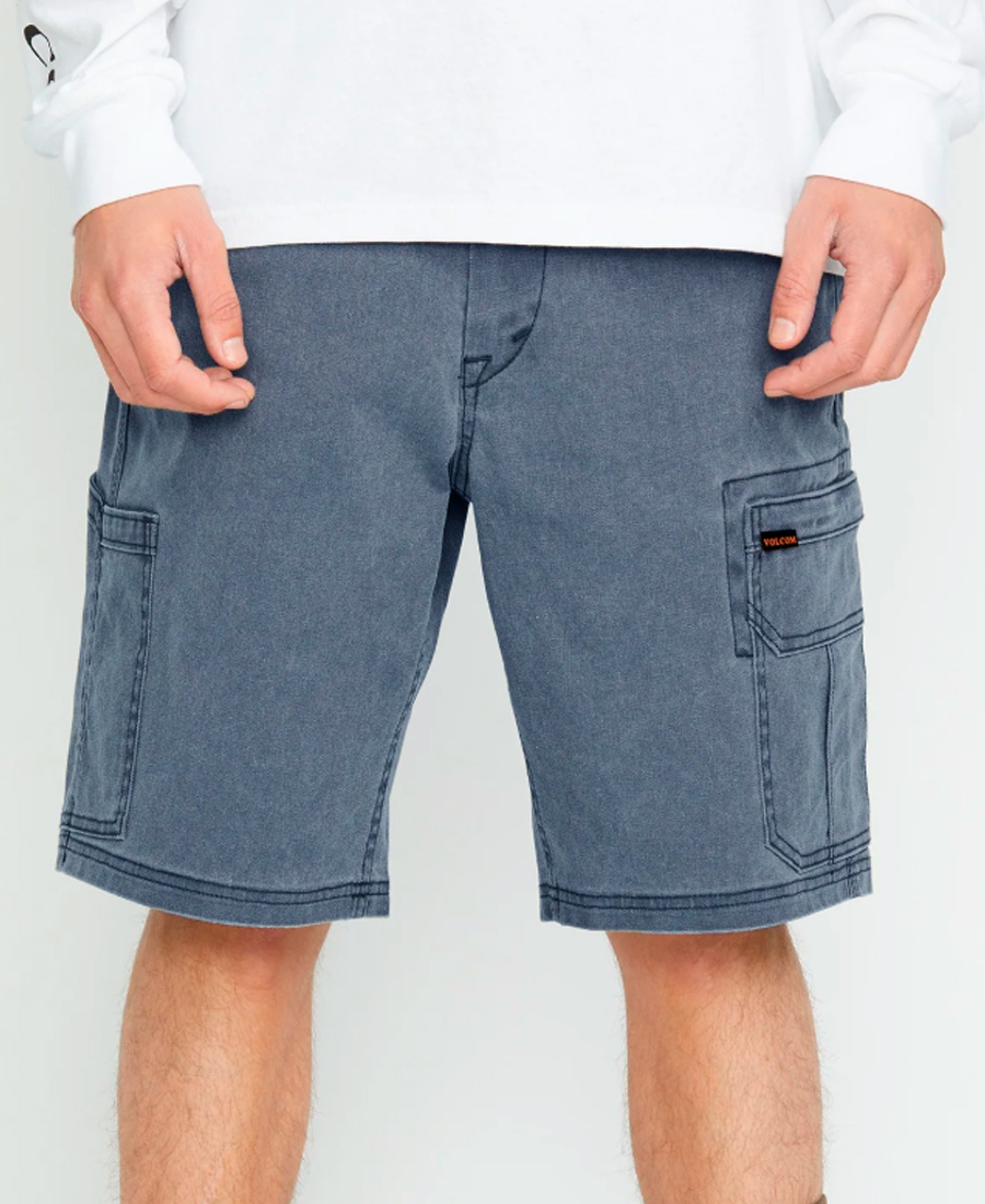 Bermuda Volcom Cargo Gage Work 21". Relax Fit. Bordado en pierna. Lavado enzimático intenso pigmentado. Inspirado en indumentaria de trabajo. Bolsillo cargo. Etiquetas de cápsula Work. Canvas stretch / 62% algodón / 36% poliéster / 2% elastano.