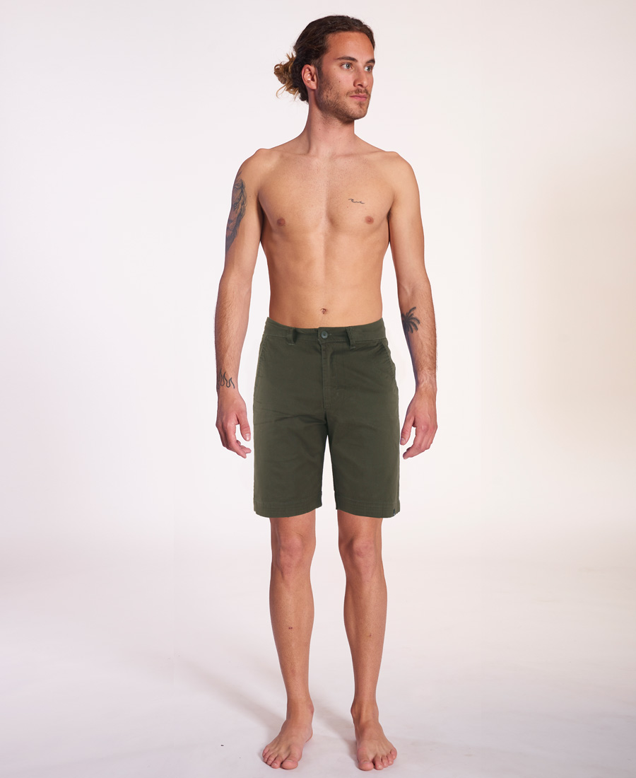 Bermuda Rip Curl Beach 18. Slim fit. Largo lateral 18” (45 cm). Lavado suaviado. Multietiquetas bordadas 96% algodon 4% elastano. Algodon Strech Esmerilazado.