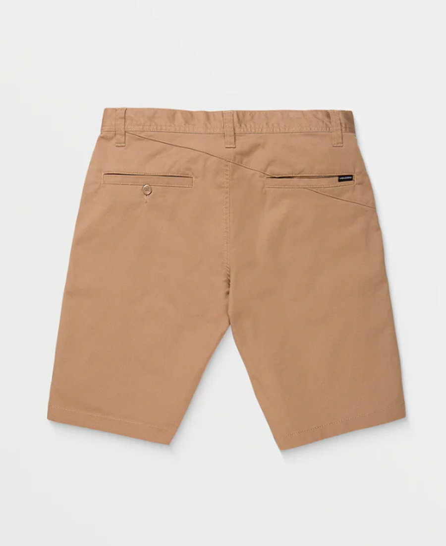 Bermuda Volcom Chino Frickin 21". Straight Fit. Bordado en pierna. Bolsillos ojal. Canesú asimétrico. 39% Poliester reciclado / 59% Algodón / 2% Elastano.