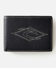 Billetera Rip Curl Fadeout Stitch de cuero. Protección RFID. Múltiples ranuras para tarjetas. Bolsillo secreto para guardar tarjetas. Moneda con cremallera. Nota gemela. Detalle de puntadas en contraste.