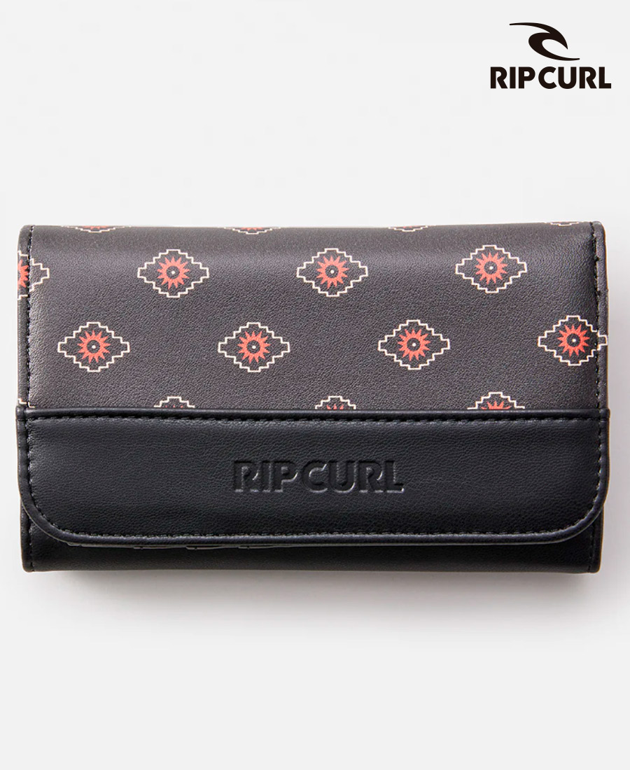 Billetera Rip Curl Mixed. PU. Cierre a presión metálico. Estampado de yardas por todas partes. Logotipo en relieve. Compartimento para monedas. Múltiples ranuras para tarjetas.
