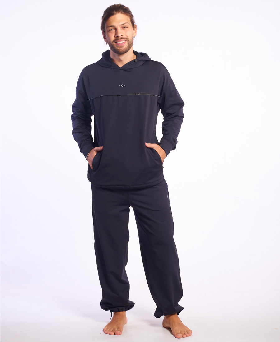 Buzo Rip Curl Medina. TERMICO JASPEADO. Relaxed fit. Recortes + bolsillos en delantero. Cierres invisibles. Vivo marcario. Transfer de marca. Tancas en capucha y cintura. Limpieza de escote en cint hilera. Multietiquetas. 90% Poliéster 10% Elastano.